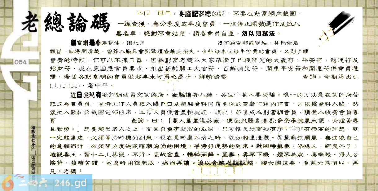 054期:六合皇金句/老总论码/萧公子/林大师/五行夺码/老总信箱截图