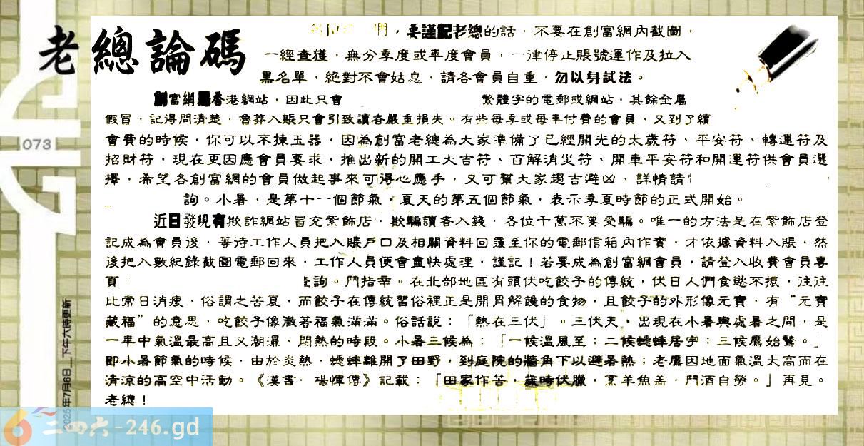 073期:六合皇金句/老总论码/萧公子/林大师/五行夺码/老总信箱截图