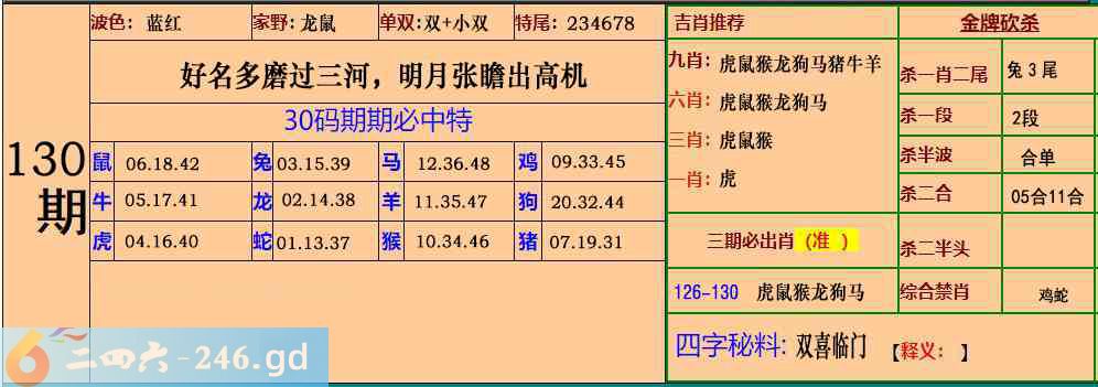 130期:30码期期必中特