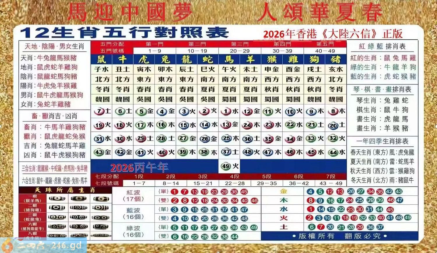 马年生肖表( 万二蚊)