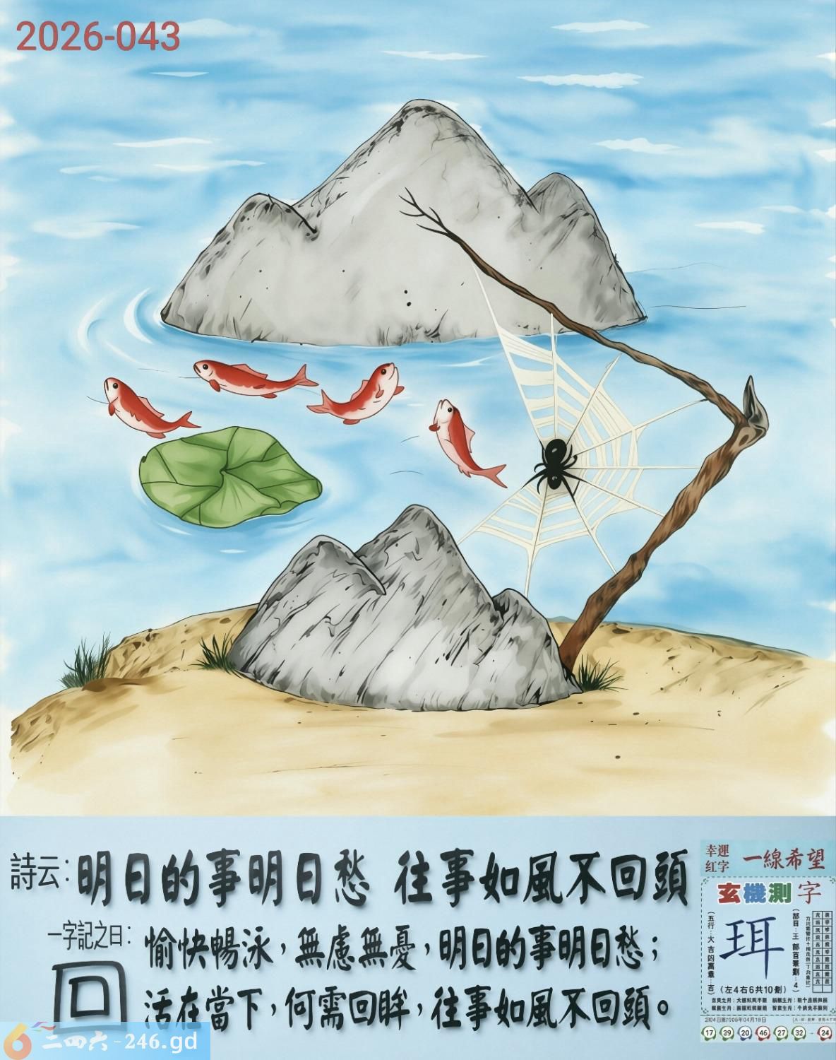 2026年4月21日三月初五星期二海中金牛日冲羊 043期:老版跑狗玄機一字記之曰:【回】 詩云:明日的事明日愁,往事如風不回頭 愉快暢泳,無慮無憂,明日的事明日愁; 活在當下,何需回眸,往事如風不回頭。 玄機測字:《珥》 密圖詩:半信半疑猜左邊 記:八仙賀喜到門前 特碼大小單雙句:天天去市場買菜 今期必中:司馬昭 043期:特碼歇后語 离水的鱼儿-----干张嘴 043期正版四字梅花诗:热血三国。 043期火车头:烧伤龙。诗:龙死马伤,看好三九梦中游。 043期香港第一手欲钱料:好又多? 043期曾道人说:“三分之一?” 043期另版四字梅花诗:九九归一。 043期香港第一手欲钱料:欲钱找电视剧的外壳。 043期曾道人说:“为什么老鼠看见猫会害怕”? 043期:二字经:绿蓝。 043期:珍珠是特码 043期:智力金壤:一丝不挂 043期信箱紅字:【雨愁煙恨】 043:【暗碼05-16-48-49】 043期一語中特:【九死一生】發財玄機圖:嘰嘰跑動晃動翅膀图中明鸡紅藍 043期藏寳圖 新:夷陵丹砂空自光 老:是处青山可埋骨 禁:虎禁:2尾玄機字《忧》 2026年043期【生活幽默】版 〖二婚〗 一老農夫早年喪妻,經媒人介绍一名三十四,五歲的女子結婚,新婚之夜,老農夫怎看新娘子都不象三十四,五歲的樣子,于是忍不住開口問新娘子:"到底幾歲?" 起初新娘還不肯,後來還是不住老農夫一直的詢問,然後才幽幽地説:"人家其實四十七歲。" 對于這個答案,老農夫還是半信半疑地説:"我們兩人木已成舟,你不妨就说實話,到底幾歲?" 新娘不願這個問題一直問個没完,因此説:"這樣好了,我告訴你實話,你就别在追問了,我今年刚滿五十五歲。"
