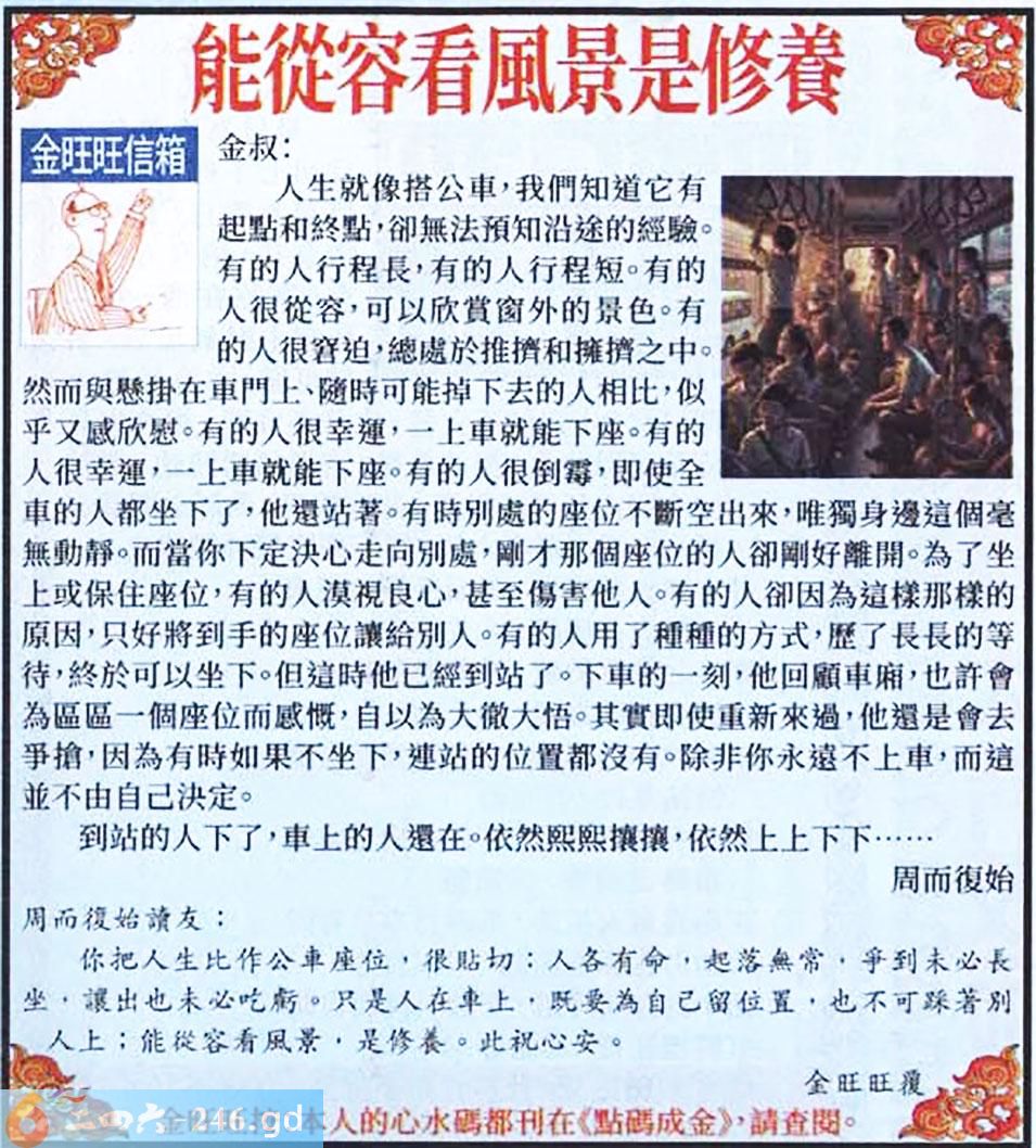 044期:金旺旺信箱彩民推荐→→《能從容看風景是修養》