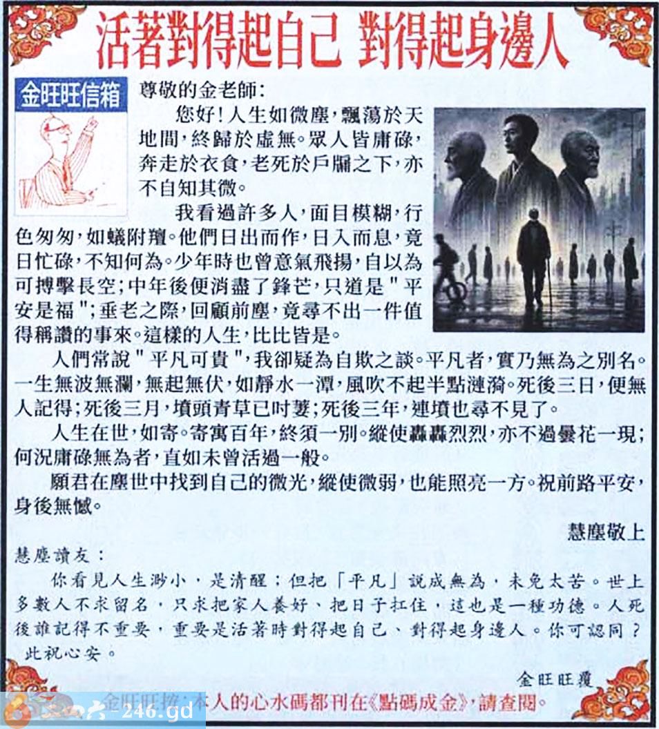 045期:金旺旺信箱彩民推荐→→《活著對得起自己 對得起身邊人》